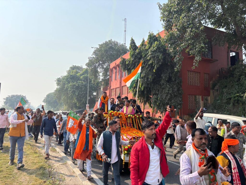 बिहार सरकार के पशुपालन एवं डेयरी विकास मंत्री सुरेंद्र मेहता रविवार को बेगूसराय पहुंचे, जहां पार्टी कार्यकर्ताओं और स्थानीय लोगों ने उनका गर्मजोशी से स्वागत किया। मंत्री के आगमन पर उत्साहित कार्यकर्ताओं ने फूल-मालाओं से स्वागत किया और पूरे इलाके में उत्सव जैसा माहौल देखने को मिला।
