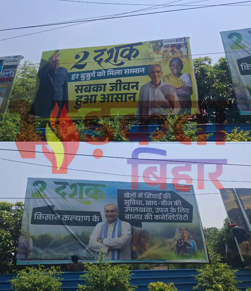 Bihar Politics: पटना की सड़कों और प्रमुख चौराहों पर इन दिनों बड़े-बड़े होर्डिंग्स और पोस्टरों के जरिए नीतीश कुमार के 2005 से 2025 तक के कार्यकाल की उपलब्धियों को प्रमुखता से प्रदर्शित किया जा रहा है। भले ही नीतीश कुमार अब मुख्यमंत्री पद पर नहीं हैं, लेकिन जनता दल यूनाइटेड उनकी सरकार के कामों को जनता तक पहुंचाने में पूरी ताकत लगा रही है।
